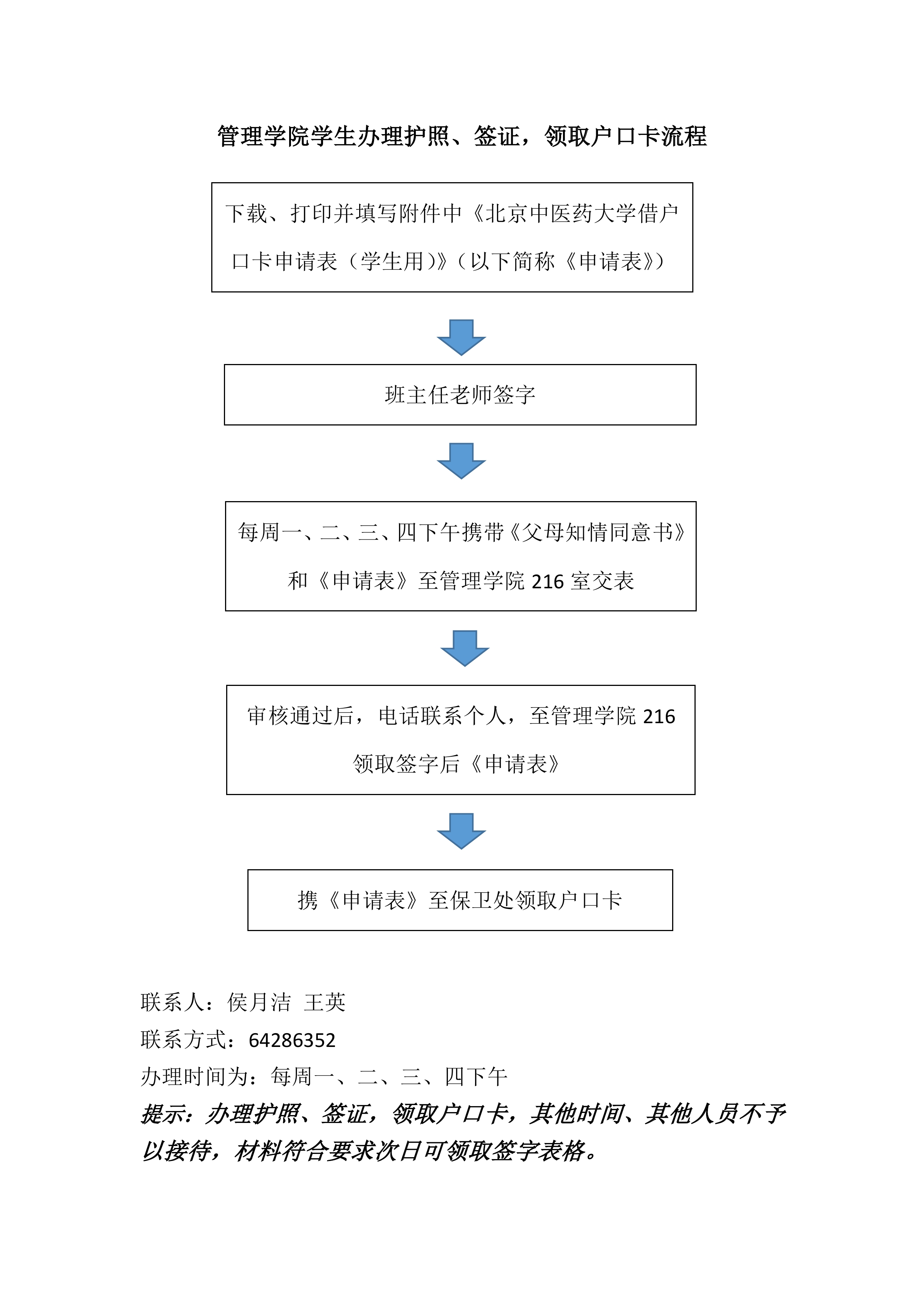 管理学院学生办理护照、签证,领取户口卡流程