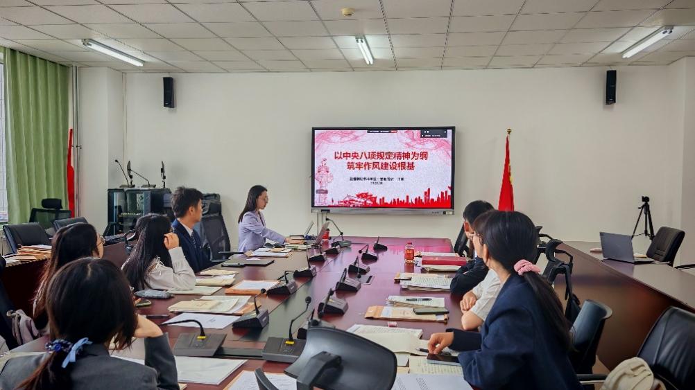 6月26日,一支部在“湖畔·青学”阅读室围绕中央八项规定精神及其细则展开深度研讨。支部书记带领党员认真研读《习近平关于加强党的作风建设论述摘编》及《党政机关厉行节约反对浪费条例》。读原著、悟原理、学规定、强作风,学生党员深刻认识到作风建设的长期性、复杂性和艰巨性。学习过后,党员们结合实际展开讨论,分享学习、工作中的体会与不足,并提出改进建议。支部党员一致表示,将以此次学习为契机,切实转变作风学风,以更加务实的态度和行动,推动支部工作高质量发展,为党的事业贡献力量。