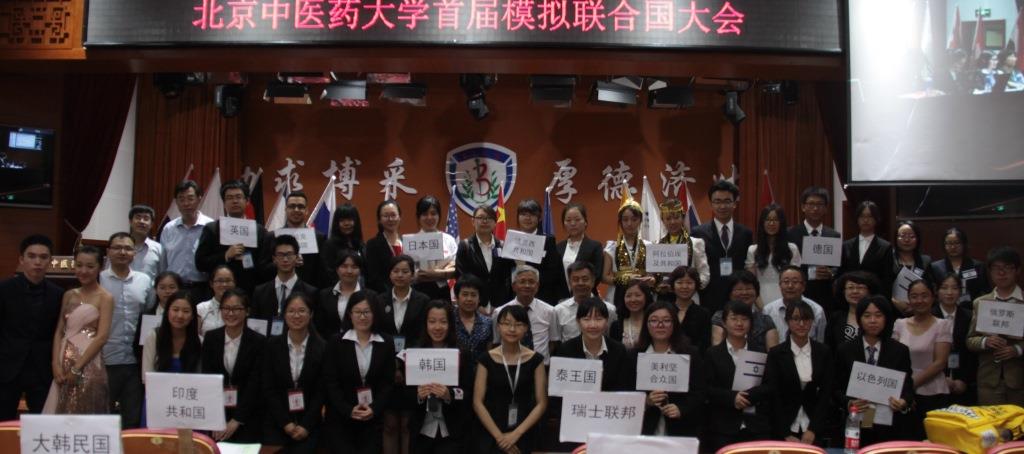 2015年5月27日,学校首届“模拟联合国大会”竞赛活动在教学楼三楼报告厅隆重举行。竞赛由教务处主办,管理学院承办。谷晓红副校长、教务处闫永红处长、国际交流与合作处张立平处长、管理学院陈峥书记以及学校相关职能部门和学院的领导也到场指导。活动还邀请到英国中医学会会长马伯英教授、世界针灸学会联合会杨宇洋副秘书长、世界中医药学会联合会包文虎主任助理,中国标准化研究院付强所长助理,北京市中医药对外交流与技术合作中心潘越主任等专家学者出任观察团专家。