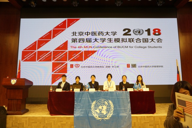 2018年5月19日下午,由教务处、团委、学工部主办,管理学院承办的学生竞赛月活动——第四届大学生模拟联合国大会在良乡校区报告厅拉开帷幕。中国联合国协会常务理事、联合国问题专家、外交学院原副院长郑启荣教授,国际交流与合作处处长唐民科,教务处副处长薛培,国际学院副院长丁胜云,管理学院党委书记陈峥,副院长李瑞锋,党委副书记赵静,团总支书记张瑶萱老师,学生办公室关健老师,教学办公室王鸿蕴老师、陈超老师出席本届大会。来自我校各学院及北京工商大学百余名学生组成的26个国家代表队齐聚于此,潇洒恣意、一展风采。