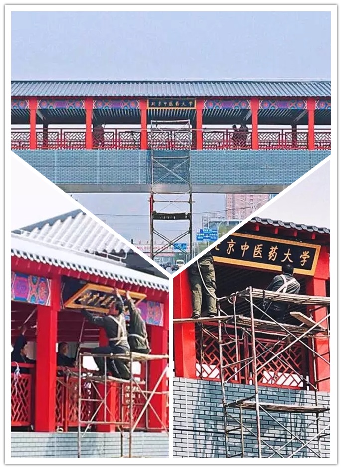 2018年4月17日上午12时,标有“北京中医药大学”字样的牌匾正式悬挂于良乡校区过街天桥之上。整个牌匾长2.39米,宽0.55米,蓝底金字,与汉唐风格的天桥设计相得益彰,超级高端!超级气派!良乡校区天桥独具特色,牌匾的悬挂更为其增添了几分大气与恢宏,已然成为北中医良乡校区一张亮丽的名片。让我们一起先睹为快吧!