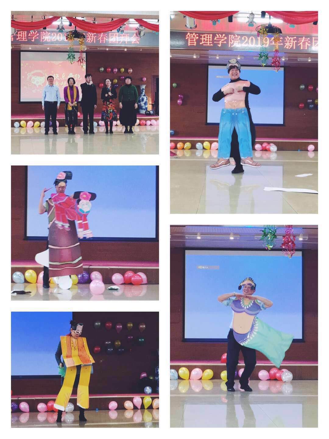 说到文艺表演,今年只能用一重又一重的惊喜来形容,良乡校区文艺骨干特邀神秘副院长联合卫管系小仙女们奉上网红舞蹈《学猫叫》,甜美妖娆、萌出天际。院长与工商系主任共舞《采薇》,清新脱俗、流丽典雅,看直了众人的眼睛。新加入管院大家庭的信管系老师,用朗诵《我的中国梦》和口哨《杜鹃舞曲》为团拜会带来了别具一格的美,更让大家像寻到宝藏一样发现了他们才华横溢的另一面。最后,最期待、最惊艳、最解压、最具创意的节目毫无悬念地属于“大佬们”的压轴力作,今年书记、院长、副院长、副书记联袂,不只跳芭蕾了,他们融民族、通俗、摇滚于一体,声台形表样样俱全,一如既往、从头至尾坚决贯彻“娱乐自己逗乐他人的精神”,为大家奉献了创意节目《纸片人》,不但成功刷新学院领导班子献艺新高度,更以“低成本、大制作、阵容太豪华”等特点充分体现出我院优秀的思路、素质、能力和品格。