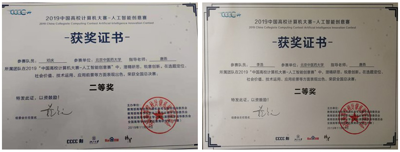 此次获奖是我校学生第一次荣获全国高校人工智能方面的奖项,极大地鼓舞了信息管理与信息系统专业学生的学习热情,同时也向大家展示了 “人工智能+中医药”相结合的创新学术研究和市场前景。