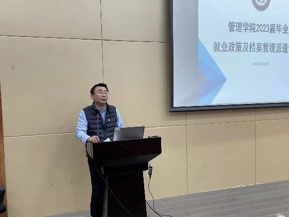 2月24日,管理学院在良乡校区学院一楼报告厅召开2023届毕业生就业冲刺动员会及暂缓派遣说明会,会议以线上线下相结合的方式进行,管理学院党委书记赵建磊、管理学院副院长王慧、管理学院就业创业专员周磊及2023届全体毕业生共同参加了此次大会。