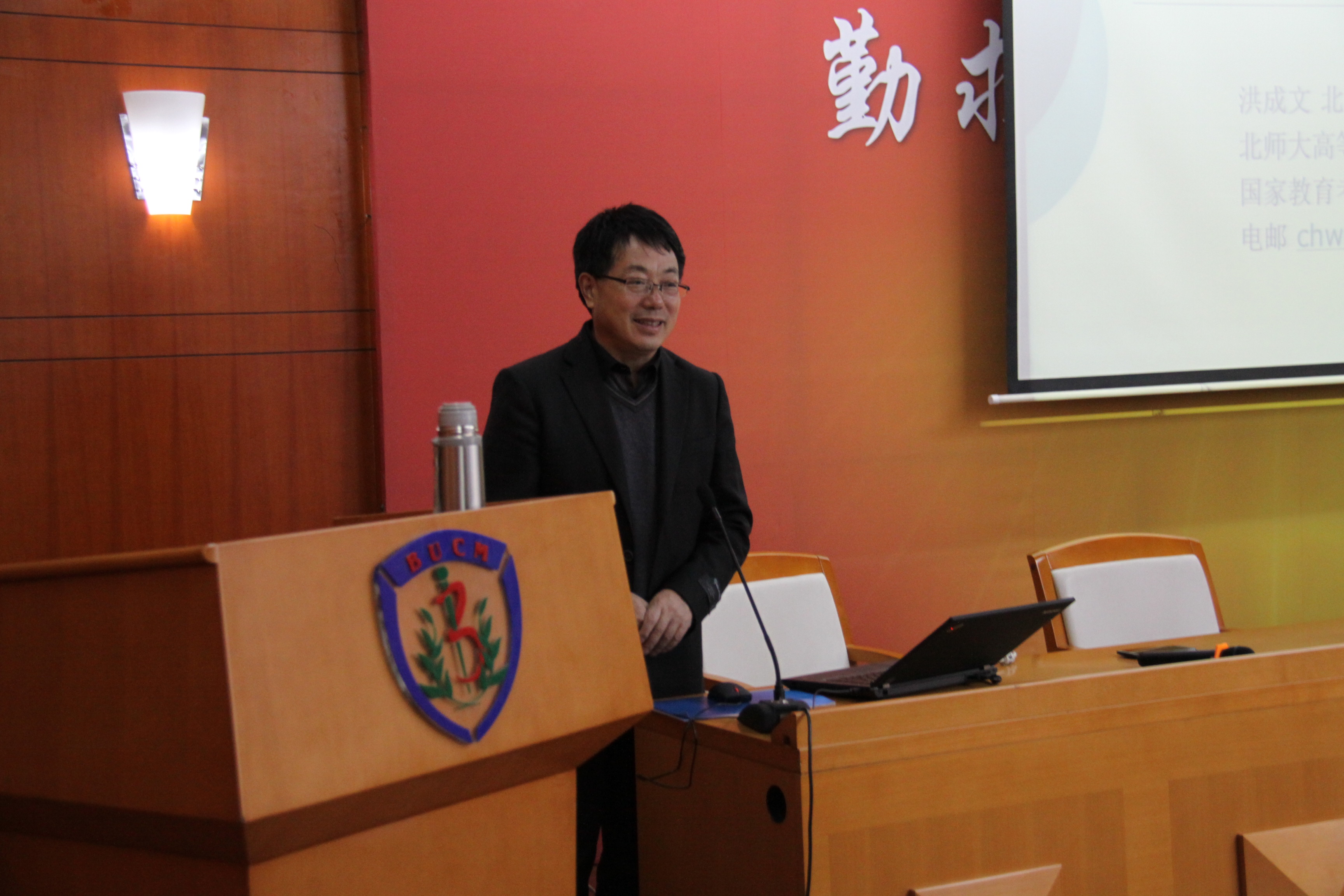 2014年10月22日下午,管理学院与学校教师发展中心联合举办的“2014教学质量月”之教师培训系列讲座专场活动,在博物馆二层报告厅举行。本次活动邀请到的主讲嘉宾是北京师范大学博士生导师,教育学部高教所常务副所长,国家教育考试评价院执行副院长洪成文教授,讲座题目为“大学教师从优秀走向卓越发展的专业路径和智慧”。我校百余位教师聆听了报告。